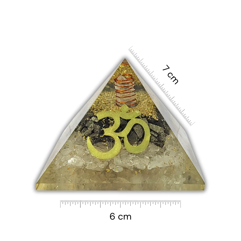 Om Orgonite Pyramid | Clear Quartz & Black Tourmaline